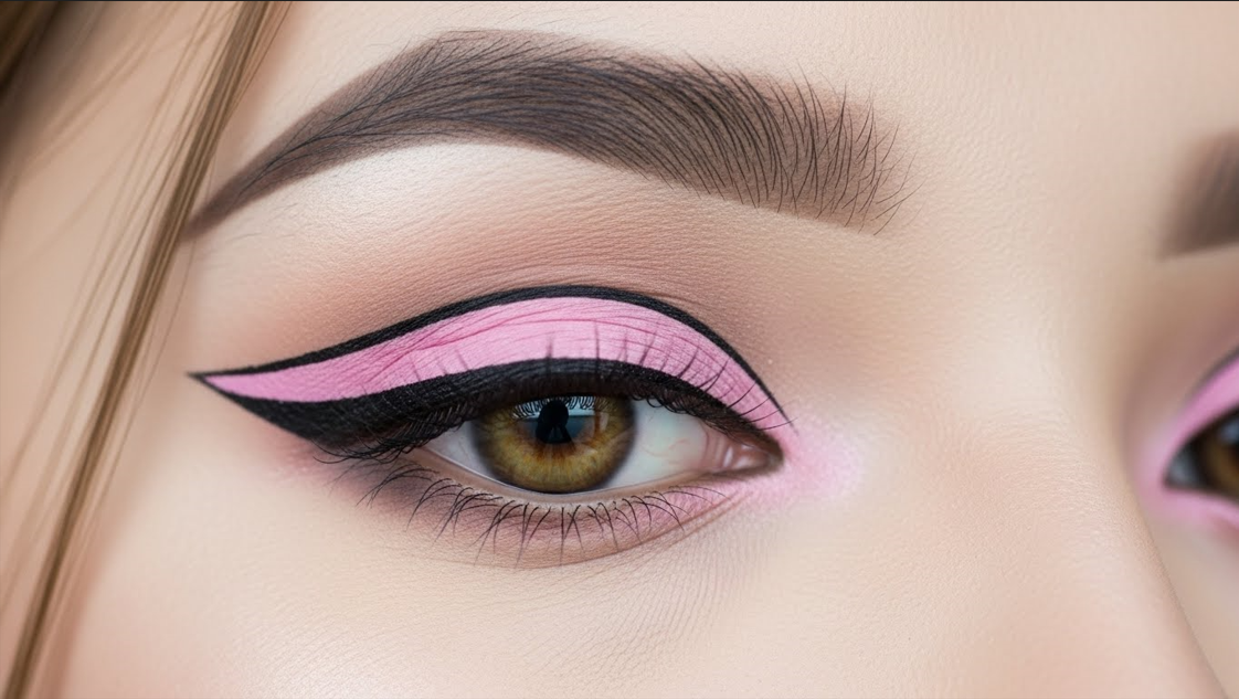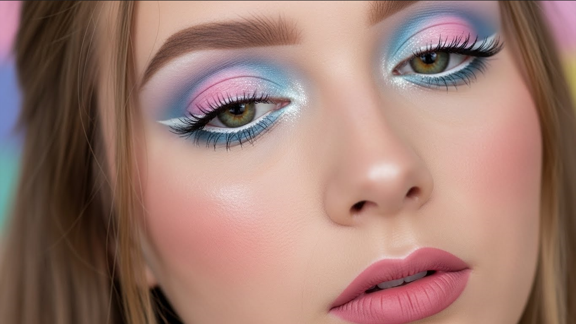 Blend soft pink over the lids with a shimmery highlight on the inner corners. This creates the iconic Barbie eye look that feels sweet and glamorous.