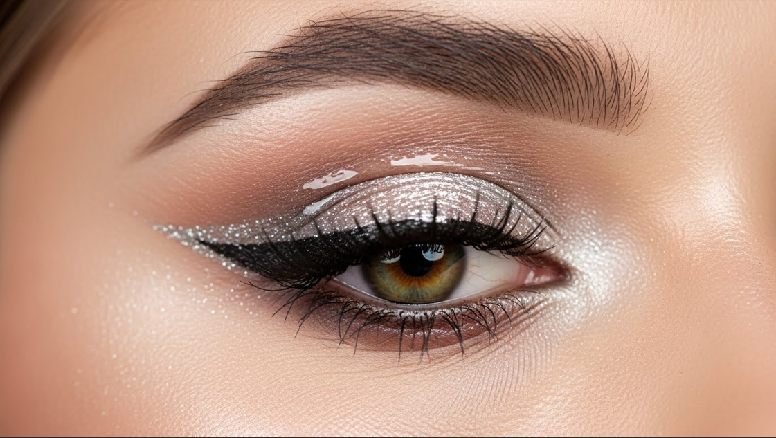A subtle line of silver along the lash line gives sparkle without overpowering.