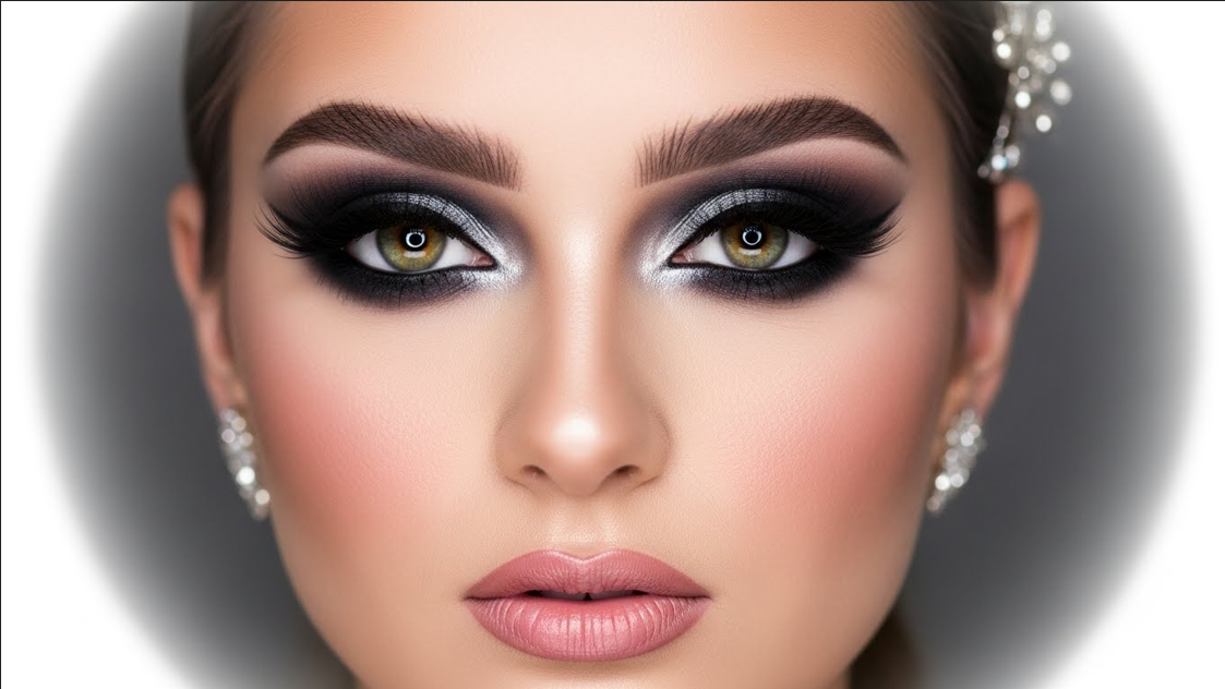 A soft smokey eye paired with a metallic wing adds dimension without heaviness.