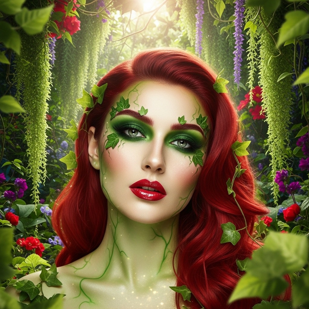 Inspired by the iconic character, this look uses emerald eyeshadows, leaf-inspired accents, and bold lashes to create a seductive botanical theme. It’s bold, unique, and trending this year.