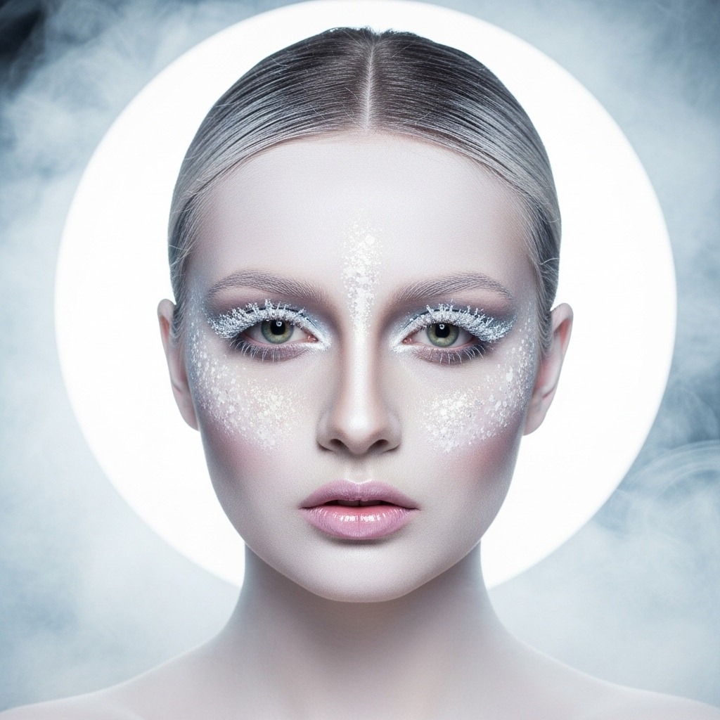 Soft ghost glam combines white tones, translucent effects, and subtle shimmer for a haunting but feminine style. It’s easy to create and looks stunning in low light or flash photography. The monochrome makeup adds mystery without going overly scary.