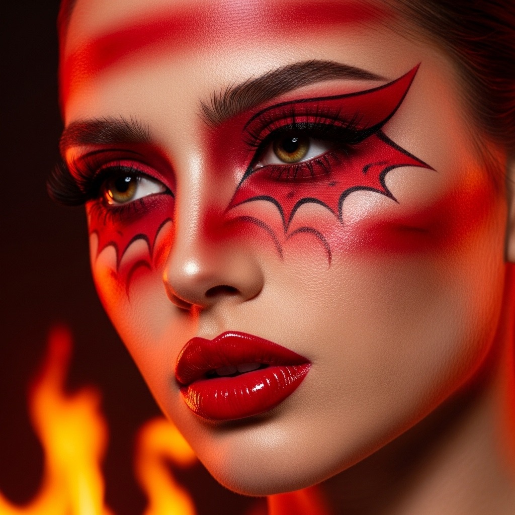 The 2025 devil glam trend focuses on red eyeshadow, glowing skin, and sharp liner paired with glossy crimson lips. It strikes the perfect balance between sultry and dramatic, making it a standout party look.