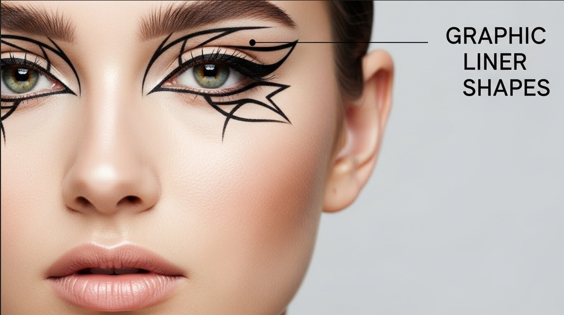 Geometric shapes or thick liner styles for creative looks.