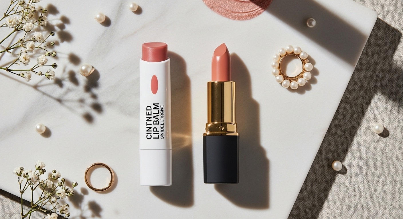 Lip balm for hydration, lip gloss for shine, lipstick for color.